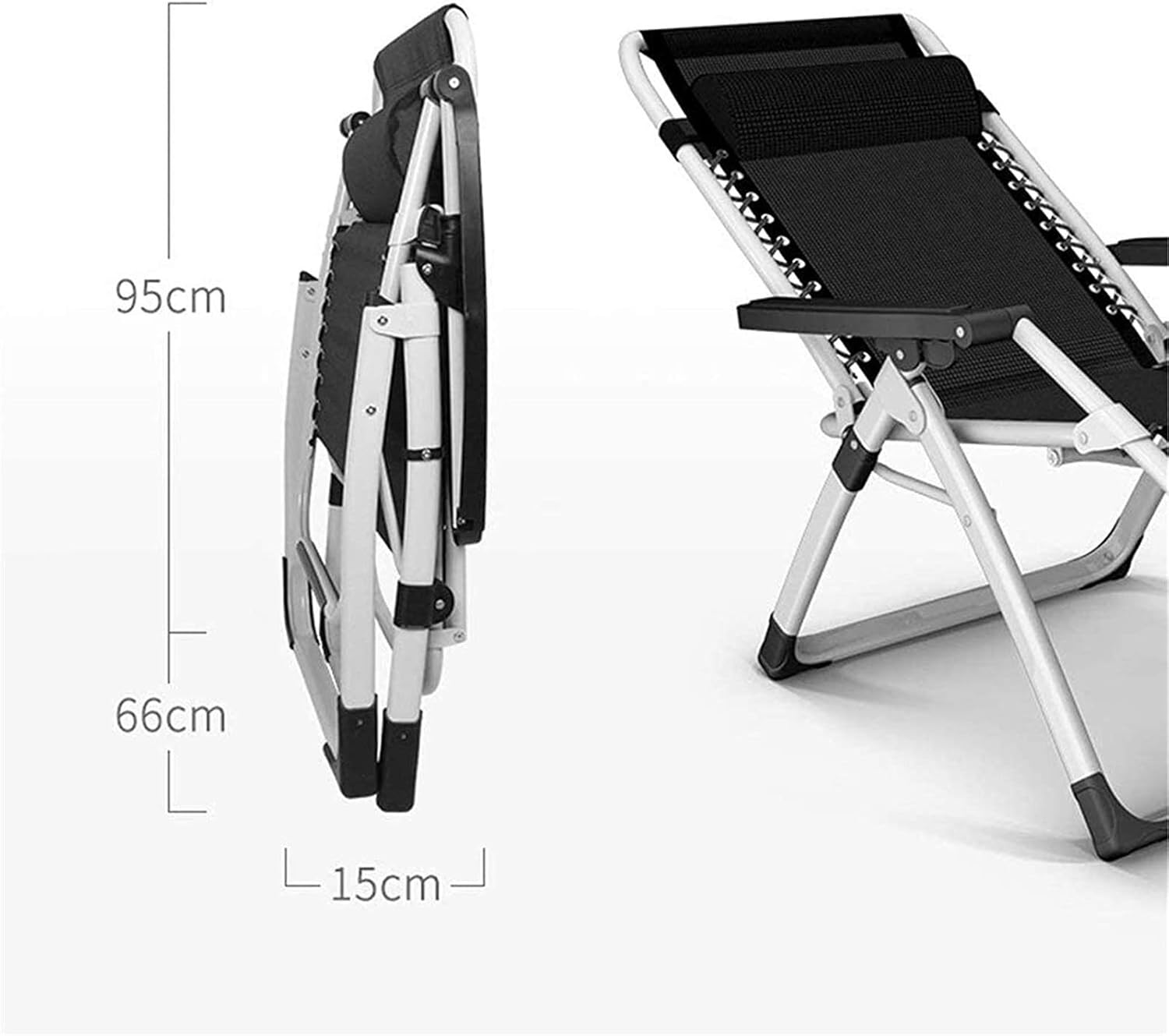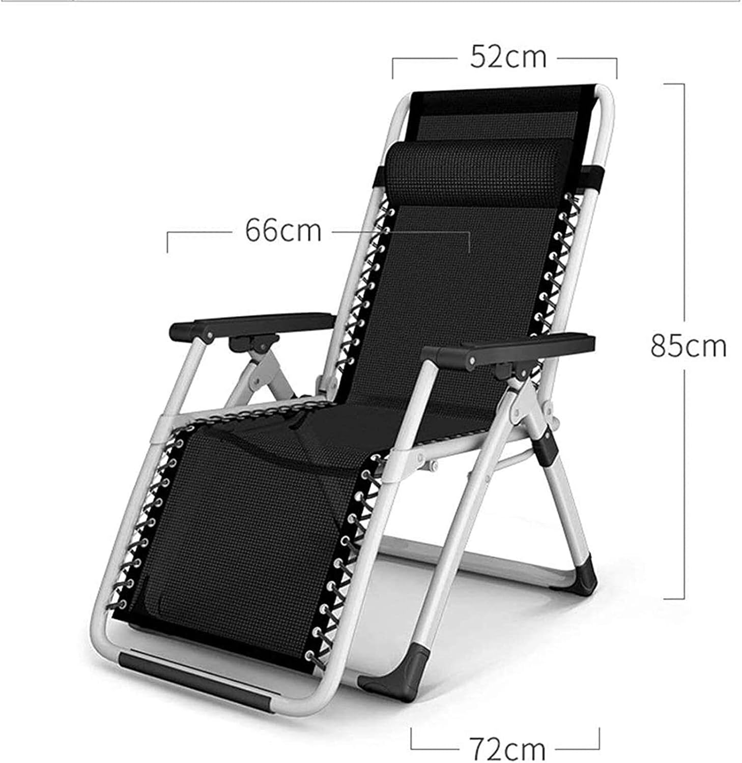 يأتي الكرسي بوسادة مريحة لدعم الرأس والرقبة، بالإضافة إلى مساند ذراعين تساعدك على الاسترخاء بشكل أفضل. كما يمكن طيه بسهولة ليصبح حجمه صغيرًا مما يجعله سهل الحمل والتخزين، ليكون الخيار المثالي للاستخدام في المنزل أو الحديقة أو الشرفة أو أثناء الرحلات والتخييم.